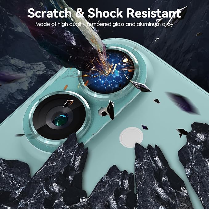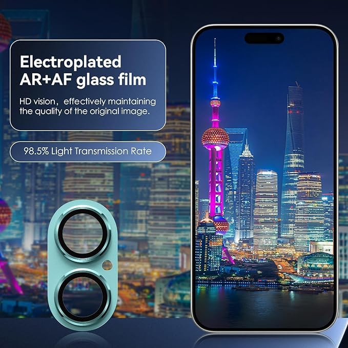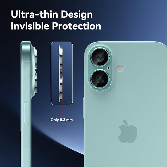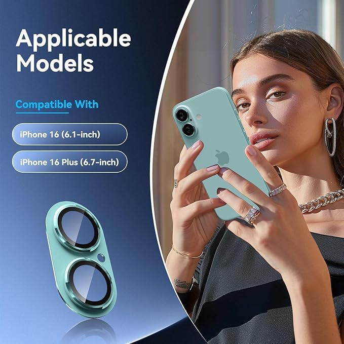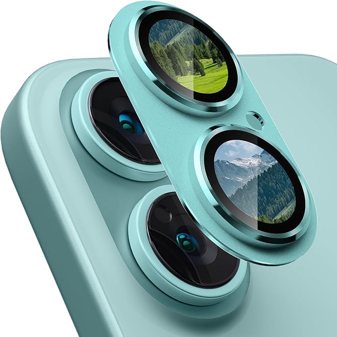 ELMO3EZZ - شاشة حماية عدسة الكاميرا متوافقة مع آبفون 16 / آيفون 16 بلس، حماية عدسة شفافة HD مقاومة للخدش، شاشة حماية عدسة من خليط معدني من الألومنيوم والزجاج المقوى، أزرق مخضر (تيل)