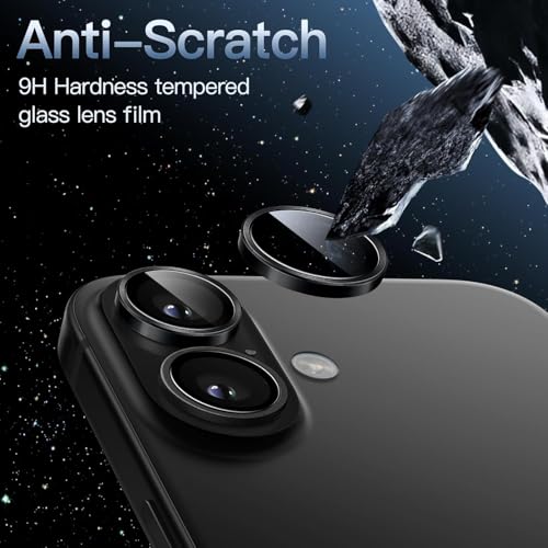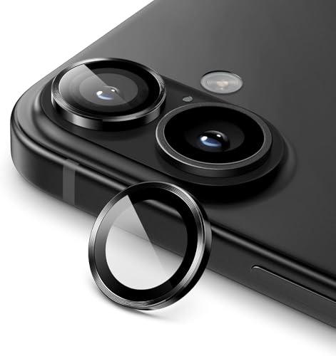 Generic - واقي كاميرا لهاتف 17/iPhone 16 مقاس 6.1 بوصة وiPhone 16 Plus مقاس 6.7 بوصة، غطاء حلقة معدنية فردية من الزجاج المقوى 9H، شفاف عالي الدقة، مجموعة واحدة (اسود)