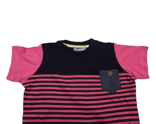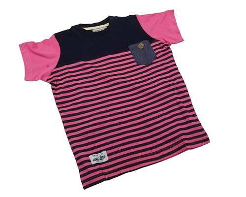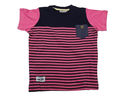 Cameron Jeans - تيشيرت قطن مخطط مع جيب جينز للأولاد من كاميرون، لون وردي وكحلي