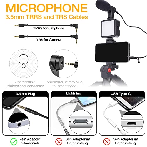CAMOLO - مجموعة تصوير الفيديو للموبايلات من كامولو مع اضاءة LED، ميكروفون وحامل موبايل ثلاثي القوائم متوافق مع معظم الموبايلات/الكاميرا/جوبرو لتيك توك ومدونات الفيديو والتصوير واليوتيوب وصور السيلفي، إضافي