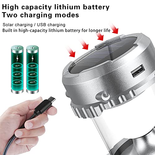 WMM - مصباح تخييم مع مروحة، مصباح يدوي فانوس قابل للطي - قابل لإعادة الشحن عبر USB، يعمل بالطاقة الشمسية والبطارية، مصباح تخييم للنزهات والشواء وصيد الأسماك والسفر، مصباح طوارئ قابل لإعادة الشحن