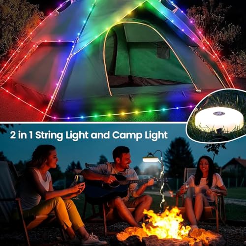 AWH - لافان سلسلة مصابيح تخييم 2 في 1 مع 8 اوضاع قابلة للتعديل، فانوس تخييم LED قابل لاعادة الشحن، 2000mAh IPX4، مصابيح تخييم محمولة للتخييم والمشي لمسافات طويلة والخيمة وديكور الكريسماس (قطعة واحدة)