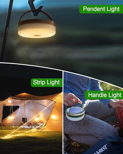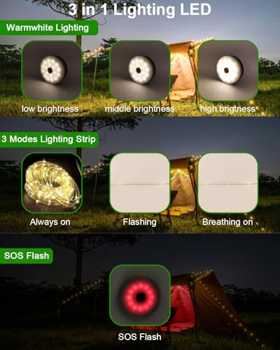 - 💡[مصباح تخييم محمول 3 في 1، شرائط إضاءة، باور بانك] -- هذا مصباح إضاءة متعدد الوظائف يدمج مصباح محمول وشريط إضاءة ديكوري وباور بانك مؤقت. هذا ليس فقط مصباح تخييم محمول للإضاءة والديكور، بل هو أيضًا مصباح ديكور سهل التخزين للتجمعات العائلية يمكن استخدامه لتزيين العطلات والمناسبات.