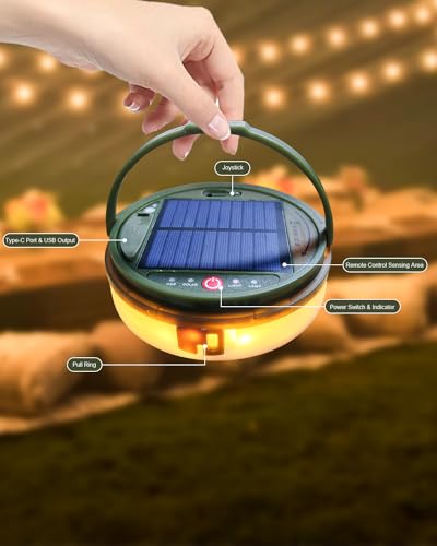 - 💡[طريقتان للشحن] -- لوحة شمسية مطورة تجعل هذا المصباح مختلفًا عن مصابيح التخييم العادية الأخرى، فهو منخفض التكلفة وموفر للطاقة. وظيفة قابلة لإعادة الشحن بالطاقة الشمسية/USB، يتم شحنها بالكامل في النهار، وقت العمل يدوم 5-12 ساعة. إذا لم يكن هناك ضوء الشمس، يمكنك اختيار استخدام الشحن السريع من النوع سي.