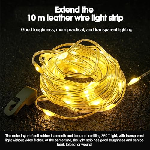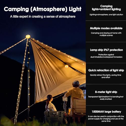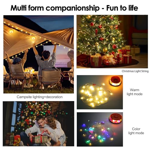 - ️️️⛺️ مصابيح تخييم 2 في 1 وأضواء خيالية: يضيف مصباح التخييم لمسة من الضوء الدافئ إلى تجربة التخييم الخاصة بك من خلال الجمع بذكاء بين فانوس التخييم والأضواء الخيالية بطول 5 م. سواء كنت تخيم تحت النجوم أو بجوار نار المخيم، فإن شريط الإضاءة هذا يمكن أن يخلق جوًا رومانسيًا ودافئًا لك، مما يجعل كل ليلة مليئة بشعور حالم.