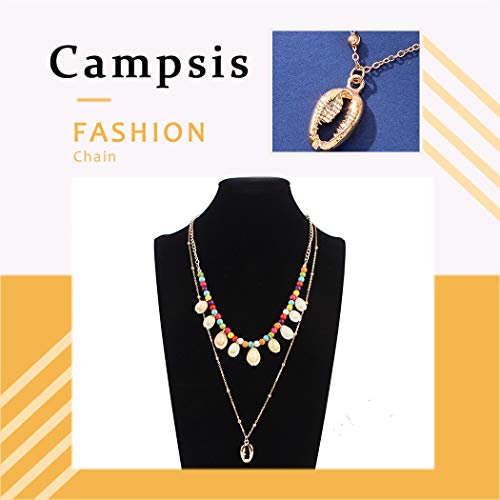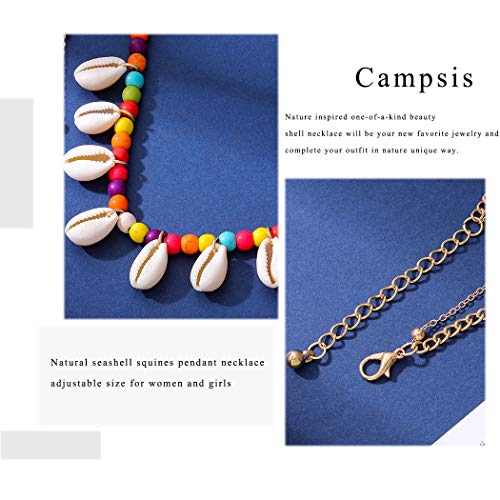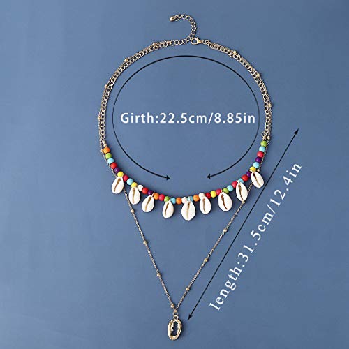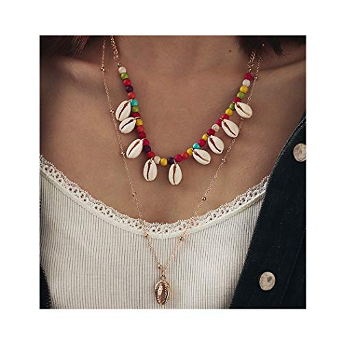Campsis - كامبسيس قلادة بوهو متعددة الطبقات بدلاية من الخرز، قلادة ذهبية على شكل صدف بحري، مجوهرات للنساء والفتيات (ملونة)
