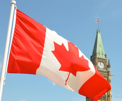 Haibro - اعلام كندا للاماكن الداخلية والخارجية - راس قماش وخياطة مزدوجة - اعلام كندية وطنية من البوليستر بالوان زاهية ومقاومة للبهتان مع حلقتين للمنزل والمكتب والحديقة