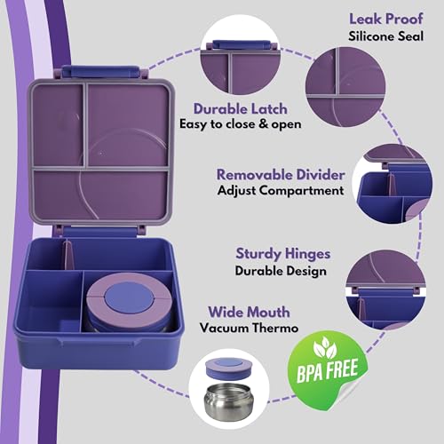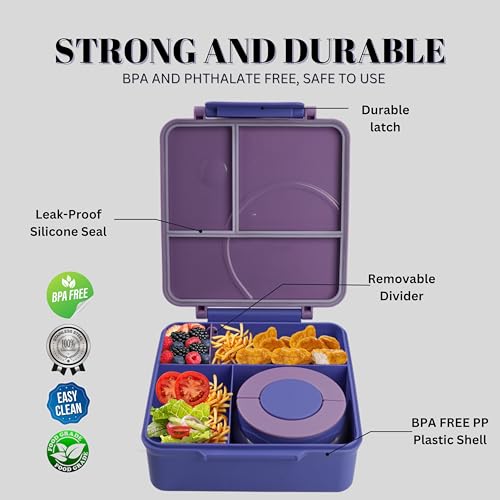 - جودة فاخرة: يتميز هذا اللانش بوكس بأنه مصنوع من البولي بروبيلين عالي الجودة والفولاذ المقاوم للصدأ الآمن غذائيًا، خالٍ من البيسفينول أ، مما يضمن بقاء طعامك آمنًا وصحيًا. يحافظ الهيكل المتين والتصميم المحكم على وجباتك طازجة، مما يجعله خيارًا مثاليًا لكلٍ من البالغين والأطفال.