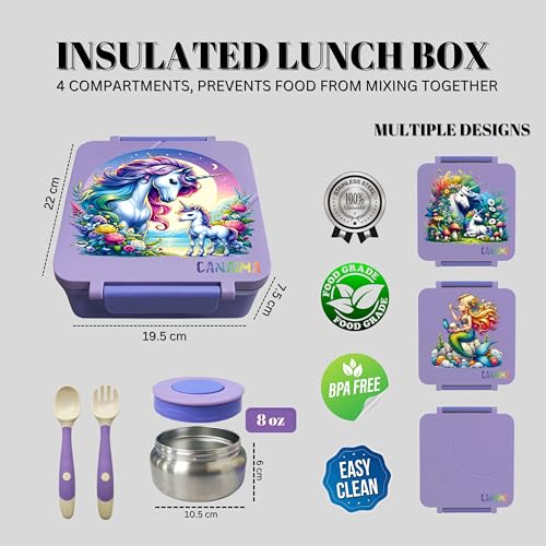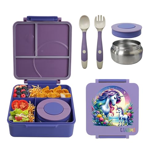 CANAIMA - لانش بوكس بينتو مقاوم للتسرب بتقنية التفريغ الهوائي آمن للاستخدام في الميكروويف وخالي من مادة البيسفينول أ وسهل التنظيف للمنزل والمدرسة والسفر والأطفال من كانايما، لون أرجواني يونيكورن، سعة 1.6 لتر
