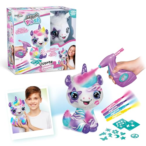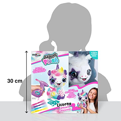 Airbrush Plush - يونيكورن لتخصيص البخاخة القطيفة من كانال تويز- لعبة رش فنية ناعمة مع اقلام واستنسل - 6 سنوات فما فوق - OFG 228