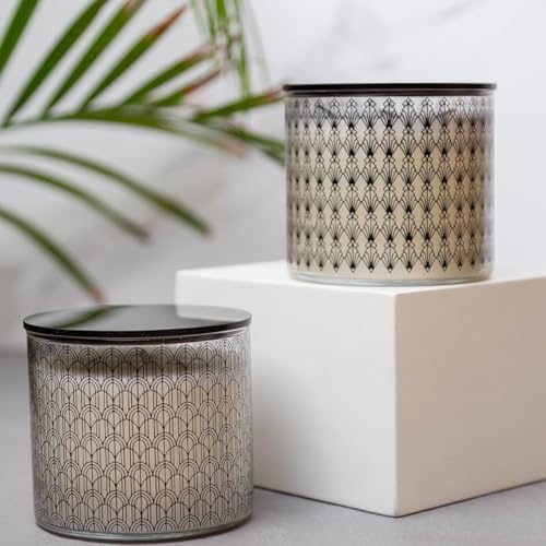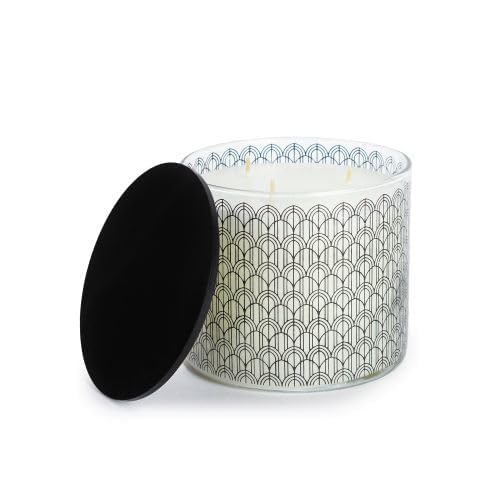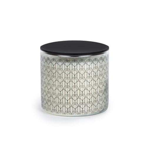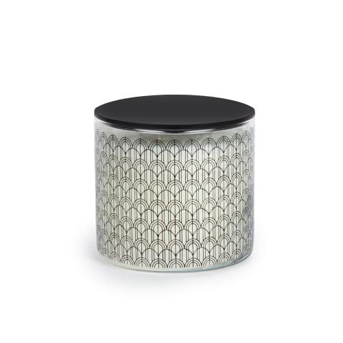 Candle Connection - شمعة زجاجية مطبوعة بغطاء بليكسي من كاندل كونكشن بتصميم أمواج برائحة العود، ارتفاع 8.7 سم × قطر 10 سم، أسود