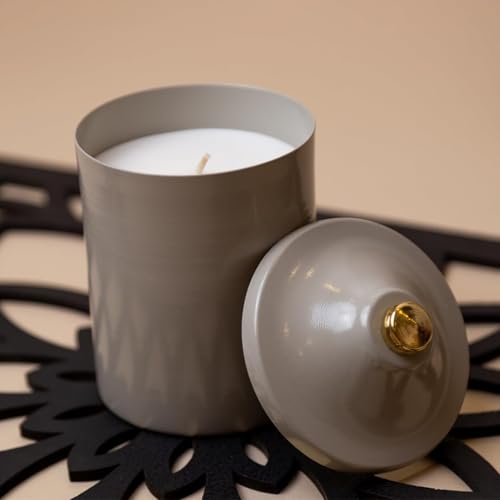 Candle Connection - برطمان شموع معدني بغطاء على شكل هرم برائحة الزهور البيضاء من كاندل كونيكشن، ارتفاع 13 سم × قطر 8.5 سم، رمادي دوف