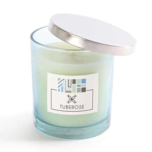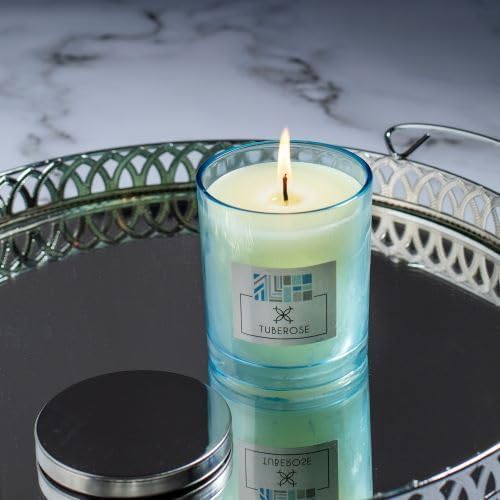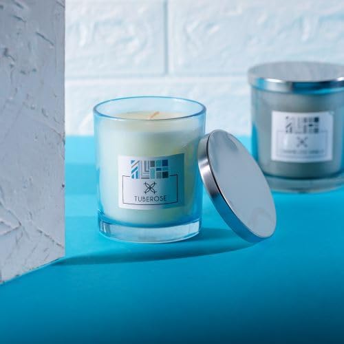 Candle Connection - شمعة زجاجية بغطاء فضي برائحة مسك الروم مع علبة هدايا من كاندل كونيكشن، ارتفاع 9 سم × قطر 8.5 سم، لون أزرق