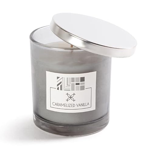 Candle Connection - شمعة في برطمان زجاجي من كاندل كونكشن برائحة الفانيليا بغطاء فضي مع صندوق هدايا، ارتفاع 9 سم × قطر 8.5 سم، رمادي
