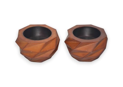 Generic - طقم حامل شموع قطعتين صغير مصنوع من الرخام الصناعي، سداسي الشكل ديكور مناسب لتزيين الغرفه، (بني)