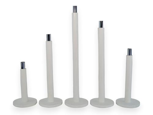 Generic - طقم حامل شموع 5 قطع أطوال مختلفة خشب بقاعدة دائريه, حامل شمعدان ديكور- لتزيين الغرفة, (أبيض)