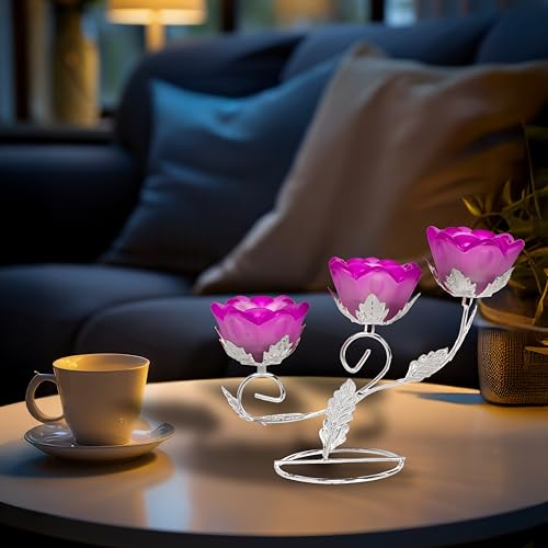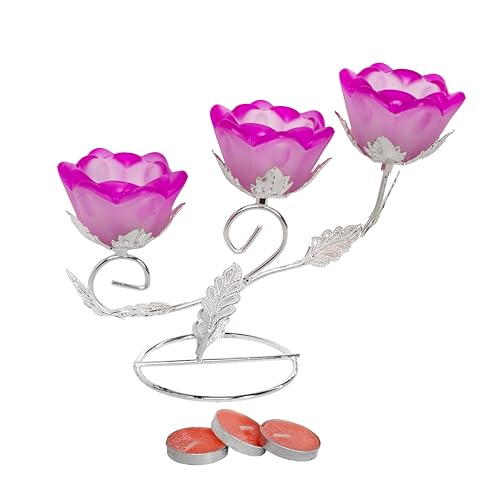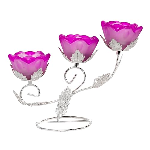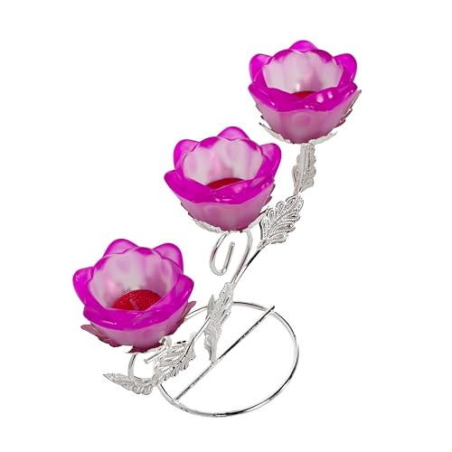 Generic - حامل شموع - حامل شموع صغير، مناسب للمنزل والمكتب - تصميم زهري أنيق مع لمسة نهائية من المعدن والكريستال