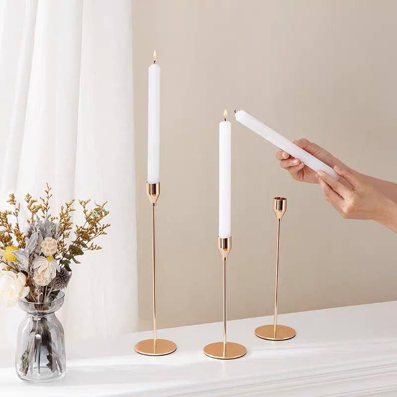 Generic - حامل شموع سميك من المعدن يتسع لـ3 شموع مستدقة، حامل شموع ملائم لحفلات الزفاف والحفلات والعشاء وطاولة القهوة مناسبة لشموع LED والشموع بسمك 3/4 بوصة، لون ذهبي