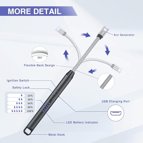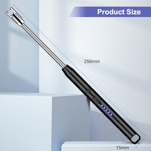 RUOVXWU - ولاعة شموع كهربائية قابلة لاعادة الشحن مقاومة للرياح بدون لهب مع رقبة مرنة 360 درجة وشاشة LED للطاقة قابلة لاعادة الشحن بمنفذ USB للشموع ومواقد الغاز والتخييم والشواء والمدفأة (اسود)