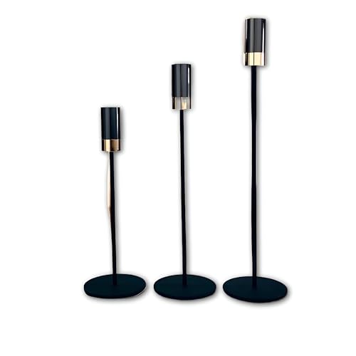Generic - شمعدان - مجموعة فاخرة من حوامل الشموع المصنوعة من خليط معدني باللونين الأسود والذهبي مع قاعدة مرتفعة، مثالية للمناسبات وحفلات الزفاف والطاولات والديكورات المنزلية الأنيقة، عبوة من 3 قطع