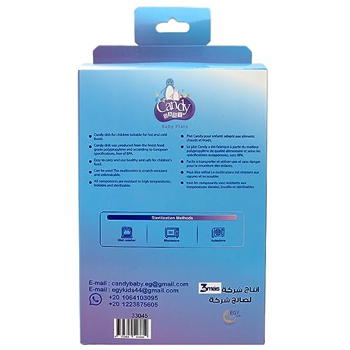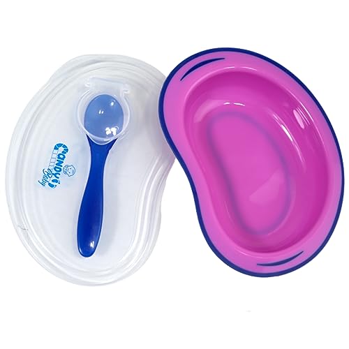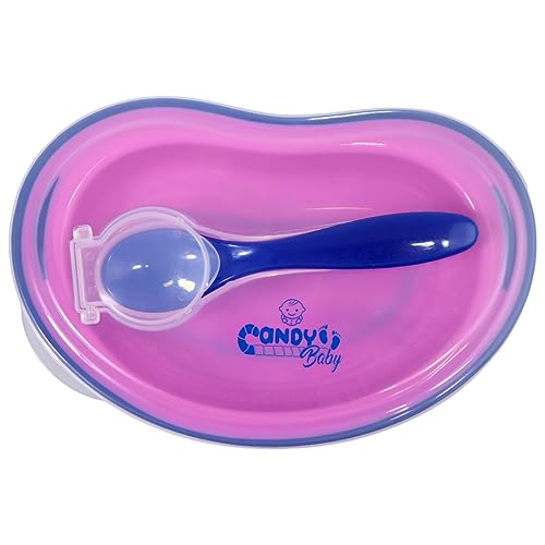 Candy Baby - طبق اطفال مع ملعقة خالية من مادة البيسفينوأ للجنسين من كاندي بيبي - لون فوشيا وأزرق - لعمر 3 أشهر فما فوق