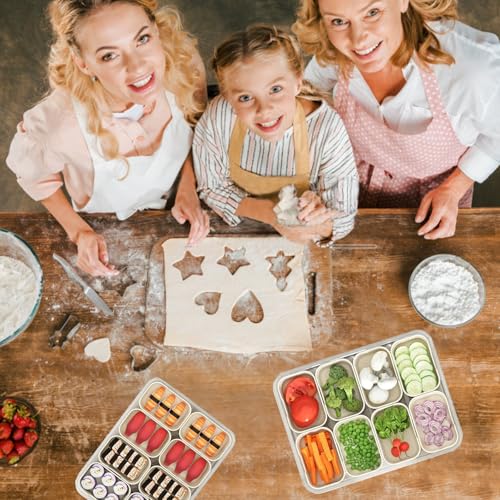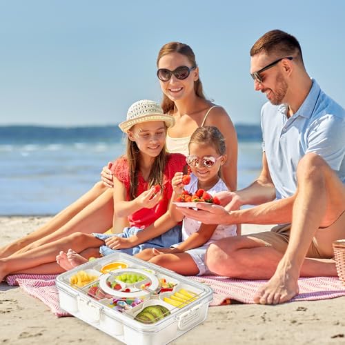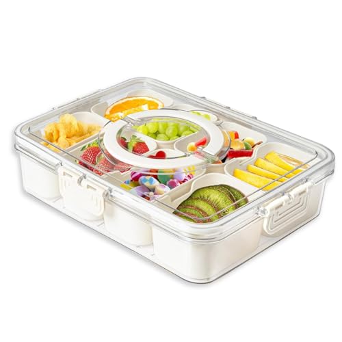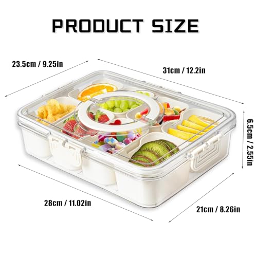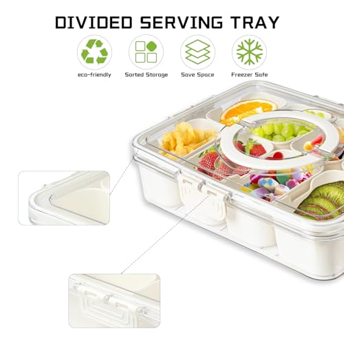- مادة آمنة: صينية الوجبات الخفيفة مع الغطاء مصنوعة من بلاستيك غذائي عالي الجودة، غير سام وعديم الرائحة، آمن وموثوق. تحتوي صينية الوجبات الخفيفة مع مساحات تخزين على 8 مساحات تخزين لتخزين الطعام بشكل فردي ومنع خلط النكهات والاتساخ.