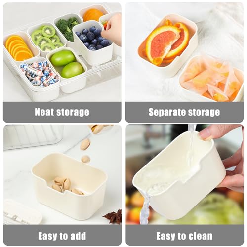 Ortviai - علب تخزين للمطبخ ومنظم للثلاجة، طبق للوجبات الخفيفة مع مقصورات، صناديق تنظيم بلاستيكية للحلويات والخضروات