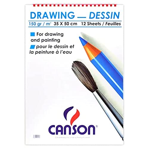 Generic - كراسة رسم 12 ورقة عيار 150 جرام لكل متر مربع من كانسون، مقاس 35x50 B3، لون أبيض