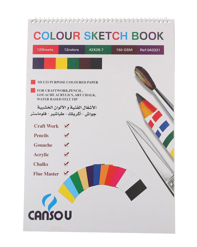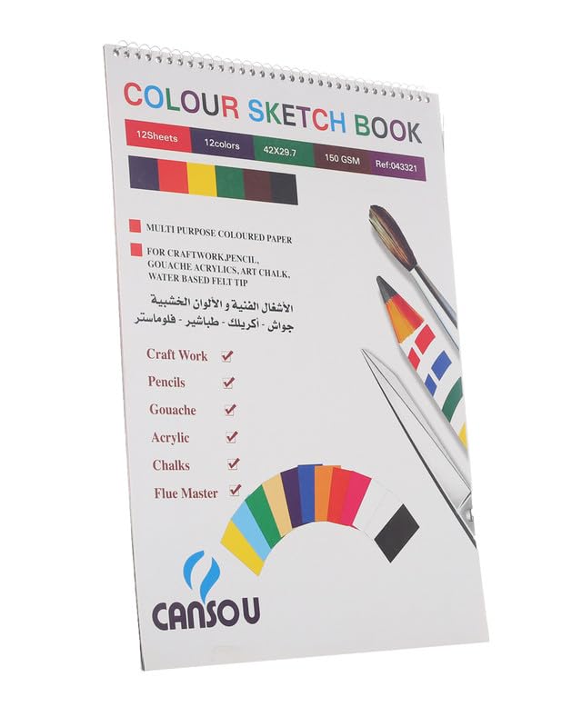 Cansou - سكيتش بسلك ملون 12 ورقة مقاس A3 بوزن 150 جرام من كانسو C-19277-3 - متعدد الالوان