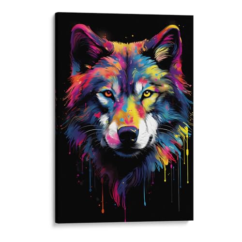 Canvas Lab - تابلوه ديكوري بتصميم ذئب للفنان دومينيكو زافري، لوحات لديكورات غرفة النوم وغرفة المعيشة والحمام والمكتب، مقاس 30 × 45 سم بموضوع: حيوانات بألوان زاهية، تصميم ذئب بفن البوب ارت