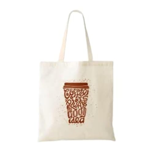 Generic - حقيبة تسوق قماشية مطبوعة بكلمات فنجان قهوة