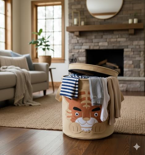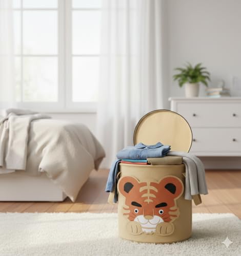 Generic - سلة تخزين قماشية للأطفال بتصميم حيوانات متعددة – خفيفة الوزن وسهلة الحمل، بسعة كبيرة مع غطاء بسحّاب، مثالية لحفظ الملابس والألعاب وتنظيم غرف النوم وغرف الأطفال