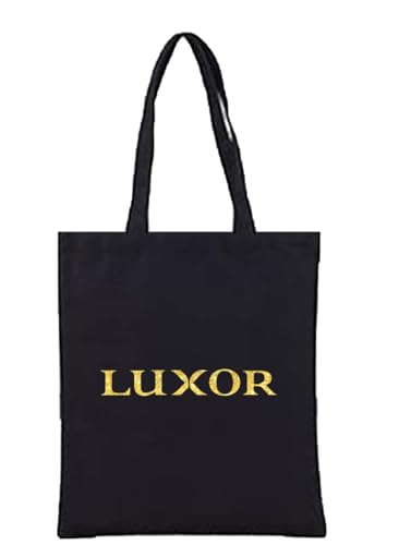 Generic - شنطة يد كبيرة توت من القماش، اسود مع شعار ذهبي، مقبض طويل