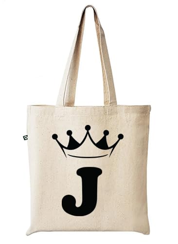 Generic - شنطة يد كبيرة توت قماشية بطبعة تاج (J) مصنوعة من القطن الطبيعي بمقابض طويلة
