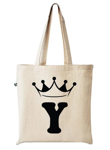 Generic - شنطة يد كبيرة توت قماشية بطباعة حرف التاج (Y)، مصنوعة من القطن الطبيعي، بمقابض طويلة