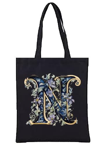 Generic - شنطة يد كبيرة توت من القماش بتصميم حرف (N)، اسود، احزمة كتف كبيرة