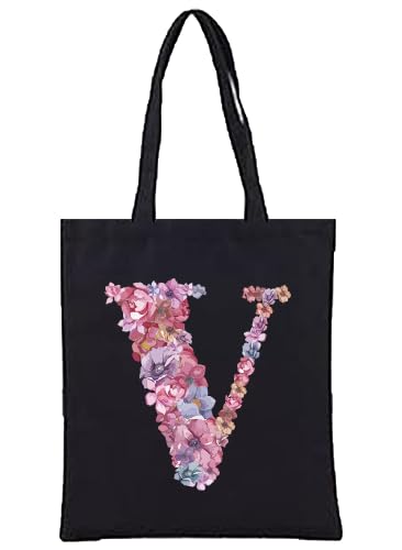 Generic - شنطة يد كبيرة توت من القماش بتصميم حروف (V)، اسود، احزمة كتف كبيرة