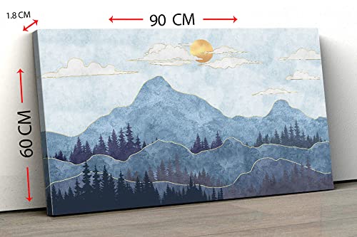Home Gallery - تابلوه حائط من القماش، صورة باطار تجريدية لصور ظلية للجبال باشجار 60×90 سم، أزرق