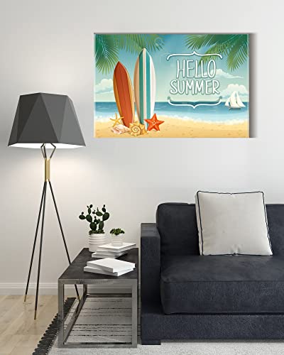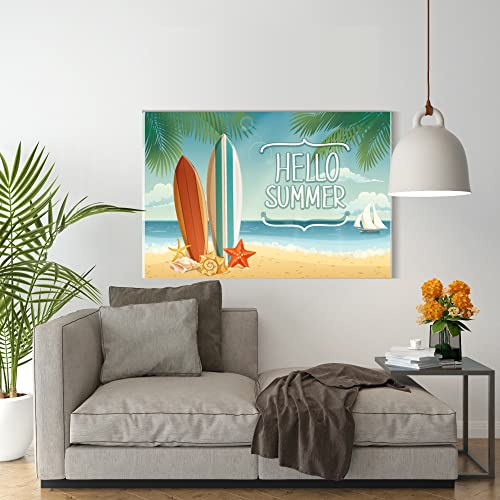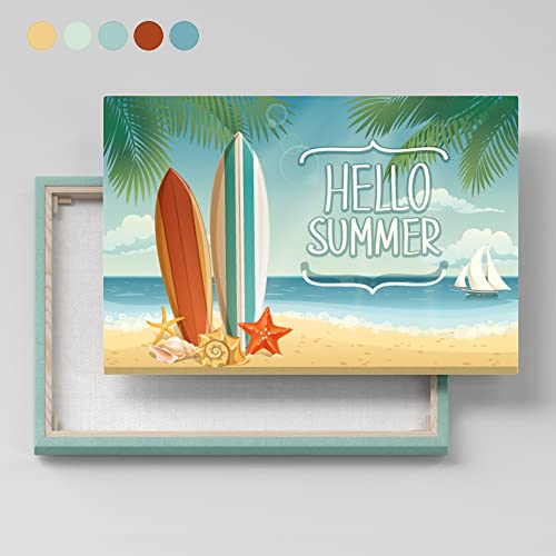 Home Gallery - تابلوه كانفاس للحائط، بورتريه تجريدي باطار لخلفية عن فصل الصيف مع الواح التزلج علي الماء 120 عرض × 80 ارتفاع × 2 عمق، أزرق