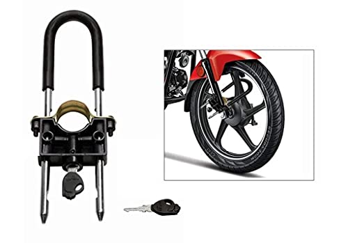 CAPE SHOPPERS - قفل العجلة الامامية للدراجة بلمسة نهائية مطلية بالحديد الثقيل مع مفاتيح عادية لهيرو وهوندا وباجاج وياماها من كيب شوبرز، موديل عالمي