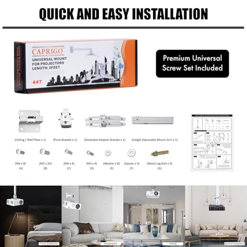 - حامل سقف عالمي فاخر لجهاز العرض بطول 2 قدم من كابريجو - 15 كغم. /- دوران وإمالة بزاوية 90 درجة /- 15 درجة. يمكن تركيب حوامل جهاز العرض هذه على السقف / الجدران.