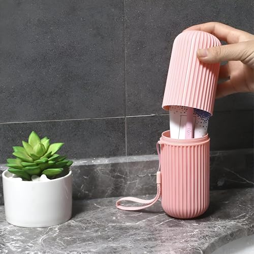Generic - حامل فرشاة أسنان على شكل كبسولة بلاستيكي وعملي بألوان مختلفة للسفر | مناسب للمشي لمسافات طويلة والتخييم - شنطة تخزين فرشاة أسنان مريحة (حامل واحد)