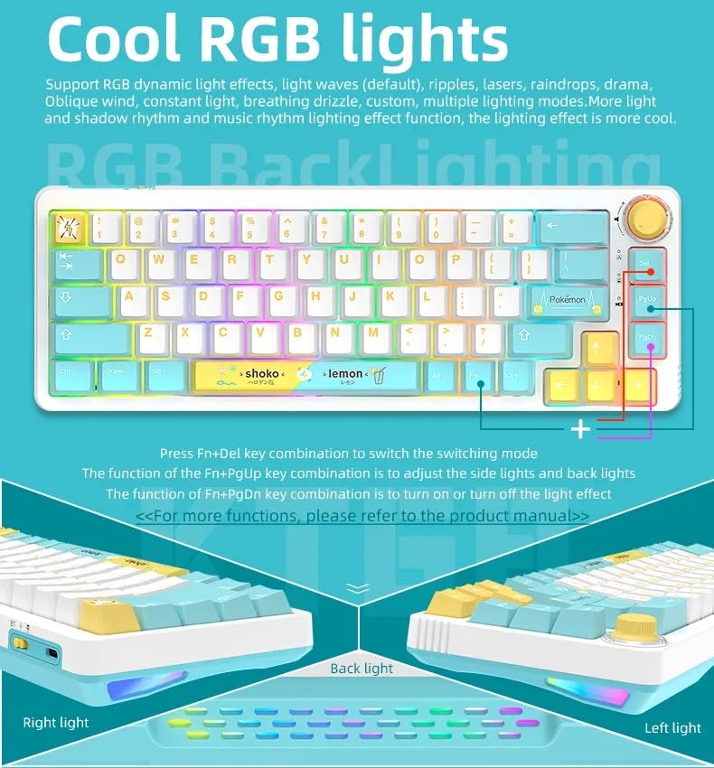 Generic - لوحة مفاتيح ميكانيكية للألعاب بإضاءة ار جي بي - مفتاح خطي سي سولت قابل للتبديل السريع - أغطية مفاتيح من البولي ايثيلين ومقبض لمستوى الصوت من كابتور KT68