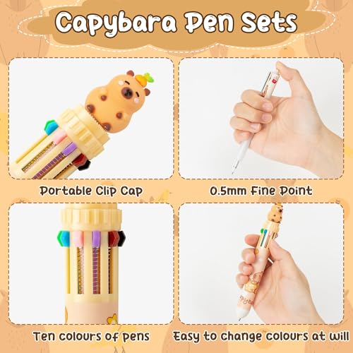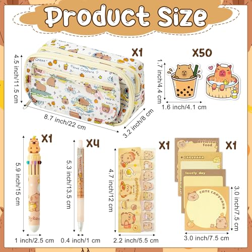 - 🐹 أدوات بتصميم كابيبارا جذابة: تتضمن مجموعة الأدوات المكتبية الممتعة هذه مقلمة بتصميم كابيبارا و4 أقلام كابيبارا سريعة الجفاف (بأشكال عشوائية) وقلم متعدد الاستخدامات بـ 10 ألوان و3 دفاتر ورق ملاحظات لاصق (120 صفحة إجمالاً) و8 بطاقات فهرسة (120 صفحة إجمالاً) و50 ملصق كابيبارا—كل ما تحتاجه للاستخدام اليومي.