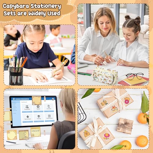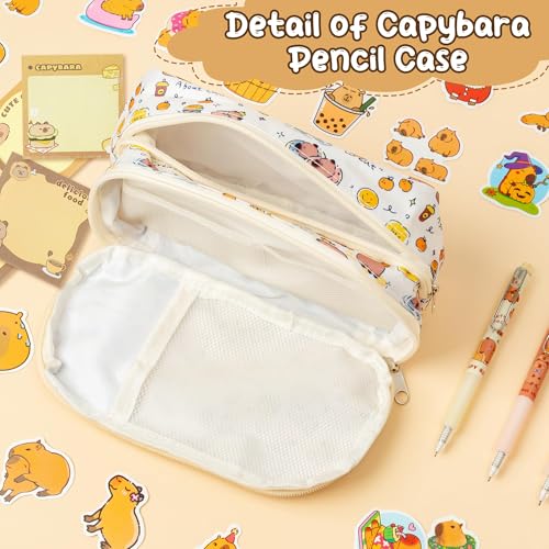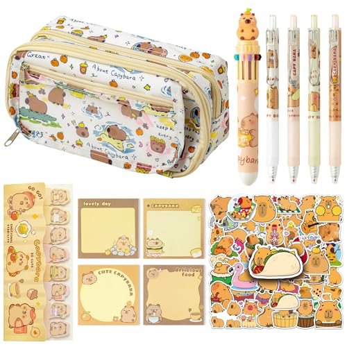 KASTWAVE - مجموعة أدوات مكتبية ومقلمة متعددة الطبقات والوظائف بتصميم كابيبارا مع أقلام وملصقات وورق ملاحظات لاصق للمكتب والأطفال والطلاب