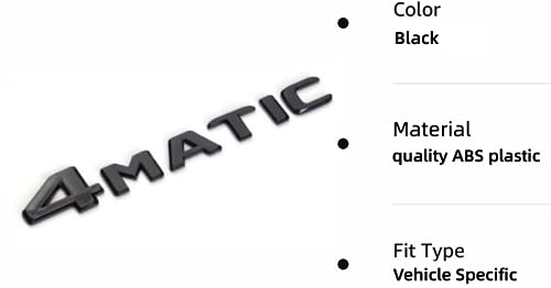HUIANTS - شعار سيارة ثلاثي الأبعاد بنمط "4MATIC" مصنوع من بلاستيك ايه بي اس، شارة بديلة لتزيين صندوق السيارة (لون أسود)