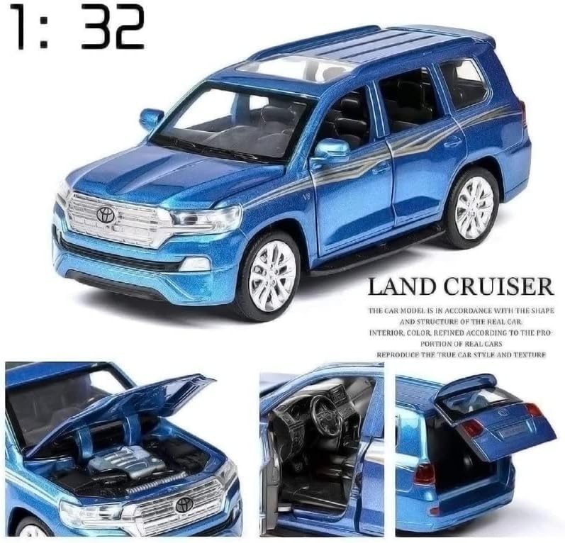 Generic - لعبة سيارة معدنية رباعية العجلات تعمل بالسحب للخلف مع أبواب مفتوحة وغطاء محرك وذيل مع ضوء أمامي وخلفي وموسيقى، رائعة للأولاد والبنات (تويوتا لاند كروزر)