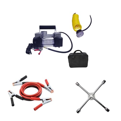 Generic - ضاغط هواء للسيارة - أسطوانتان + مفتاح عجلات + كابل بطارية