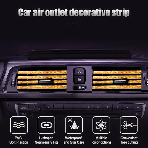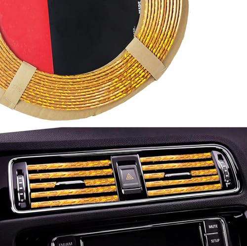 Generic - حواف لفتحات تهوية تكييف الهواء في السيارة من الكروم وبلاستيك ، شريط تزيين للحواف الداخلية للسيارة لجميع فتحات التهوية المستقيمة، إكسسوارات لامعة - طول 2 متر - (لون ذهبى لامع عاكس) - من كابر تريد