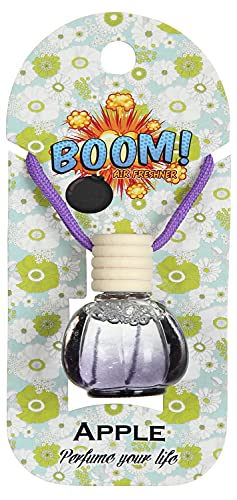BOOM - معطر جو للسيارة يثبت على مراية السيارة، بزيوت عطرية وغطاء موزع خشبي - برائحة تفاح، أسود
